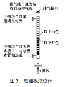 由于在石灰液位計的進水接口法蘭處安裝有閥門, 在平時不需要水泵水輪機排水檢修時, 該閥門處于關閉狀態, 必要時可以通過裝置底部的排污閥門把液位計主導管內的水排空。
