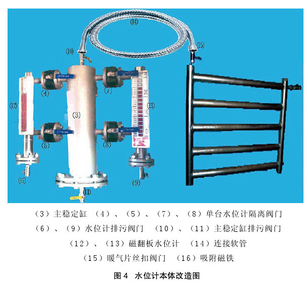 結(jié)介加熱爐水位計(jì)實(shí)際運(yùn)行研究,通過(guò)安裝磁鐵、安裝隔離控制閥門(mén)、擴(kuò)大穩(wěn)定缸容積、加裝雙水位、連接沖洗排污管線等一系列改造,將加熱爐耐腐蝕浮球液位計(jì)逐步改進(jìn),實(shí)現(xiàn)設(shè)備平穩(wěn)運(yùn)行。