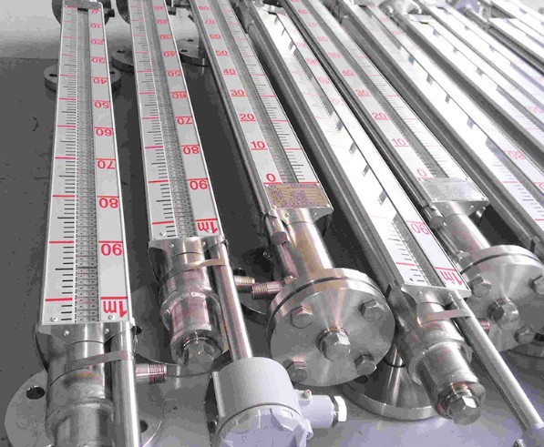 磁翻板液位計(jì),是本公司引進(jìn)、吸收國(guó)內(nèi)外同類產(chǎn)品,并加以消化、吸收、提高,按原化學(xué)工業(yè)部頒布的磁性液位計(jì)生產(chǎn)的產(chǎn)品??捎糜诟鞣N塔、罐、槽、球形容器和鍋爐等設(shè)備的介質(zhì)液位測(cè)量。該磁翻板液位計(jì)系列可以做到高密封、防泄漏和適應(yīng)高壓、高溫、腐蝕性條件下的液位測(cè)量。全過(guò)程測(cè)量無(wú)盲區(qū),顯示醒目,讀數(shù)直觀。特別是現(xiàn)場(chǎng)指示部分,由于不與液體介質(zhì)直接接觸,所以對(duì)高溫、高壓、高粘度、有毒、有害、強(qiáng)腐蝕性介質(zhì),更能顯示其優(yōu)越性。因此,它比傳統(tǒng)的玻璃管式、板式液位計(jì)具有更高的可靠性、安全性、先進(jìn)性、實(shí)用性。