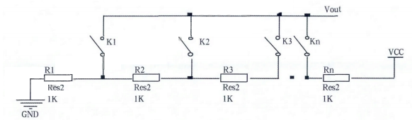 傳感器部分由串聯的電阻構成,電阻一端接電源。另一點接地,每個電阻分得的電壓是