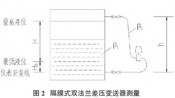 選用隔膜雙法蘭差壓變送器測量液位時,變送器的安裝位置受毛細管長度的制約,毛細管長度一般為2~10m,且需要對毛細管采取保護和絕熱措施,故選型時需要特別注意儲罐的法蘭間距,以選擇合適的隔膜差壓變送器。