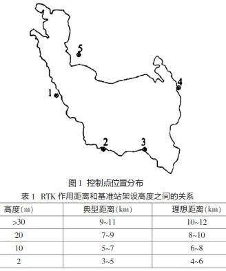 在該水庫工程當中,測量人員采用的坐標系統是1980西安坐標系。在具體的測量過程之中,測量人員運用2臺南方GPS儀器來收集相應的測量數據,并使用1臺徠卡全站儀、一臺GPS-RTK來完成相應的數據采集工作。對水庫進行勘測定界的主要目的是針對淹沒線作用的土地范圍,對界樁實施測量與放樣,結合設計水位的高程,做好界樁拔放工作。因為該地區的地形比較陡峭,故測量人員決定采用雙基站方法開展測量工作。該地區共有5個控制點,具體的位置分布見圖1。另外,因為RTK數據鏈使用超高頻電磁波,數據鏈所發生的電磁波頻率比較高,能夠得到456MHz,為了保證測量數據更為精確,測量人員可以將基準站設置在測區的zui高位置,并結合RTK作用距離和基準站架設高度之間的關系,合理控制基準站的架設高度,RTK作用距離和基準站架設高度之間的關系見表1。