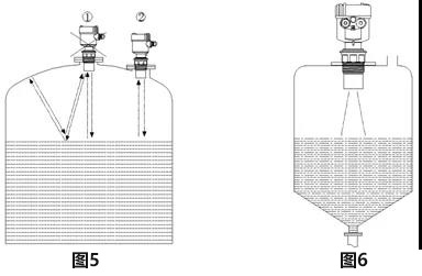 6、對(duì)于頂部為平面的錐形容器,污水池液位計(jì)應(yīng)盡量安裝在頂部中央,這樣可以保證測量到容器底部,如圖6所示。
