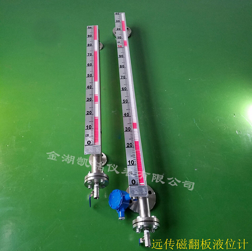根據浮力原理,浮子在測量管內隨液位的升降而上、下移動,浮子內的永久磁鋼通過耦合作用,驅動紅、白色翻柱翻轉180°,液位上升時翻柱由白色轉為紅色,下降時由紅色轉為白色,從而實現液位指示。
