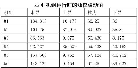 小結:在機組運行時油位有波動是正常的現(xiàn)象,受各臺機組的具體運行情況不同,加上還有傳感器的測量數(shù)值波動影響,6 臺機的各部軸承油位波動范圍沒有相同的規(guī)律。