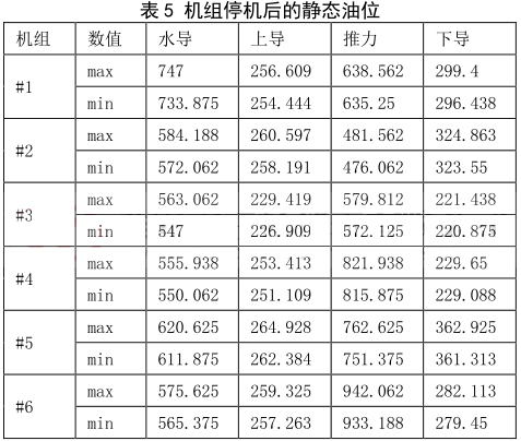 表 1 機組檢修后的靜態(tài)油位(以下油位單位均為:mm)