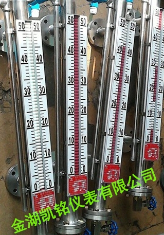 UHZ型磁翻板液位計是凱銘儀表公司創新設計的新一代液位計,產品技術先進,結構合理,顯示清晰直觀,由本體、翻板箱(由紅、白雙色磁性小翻板組成)、浮子、法蘭蓋等組成,用于各類液體容器的液位測量。也有主體內磁浮子隨液位的升降而上下運動,同時驅動主體外指示內的雙色磁板翻轉,有液位時轉示紅色、無液位時轉示白色。紅色和白色之間的界線即代表液位高度。從而使液位指示顯得更加清晰。能用于高溫、防爆、防腐、食品飲料等場合、作液位的就地顯示或遠傳顯示與控制。磁翻板液位計廣泛用于電力、石油、化工、冶金、環保、船舶、建筑、食品等行業生產過程中的液位測量與控制。